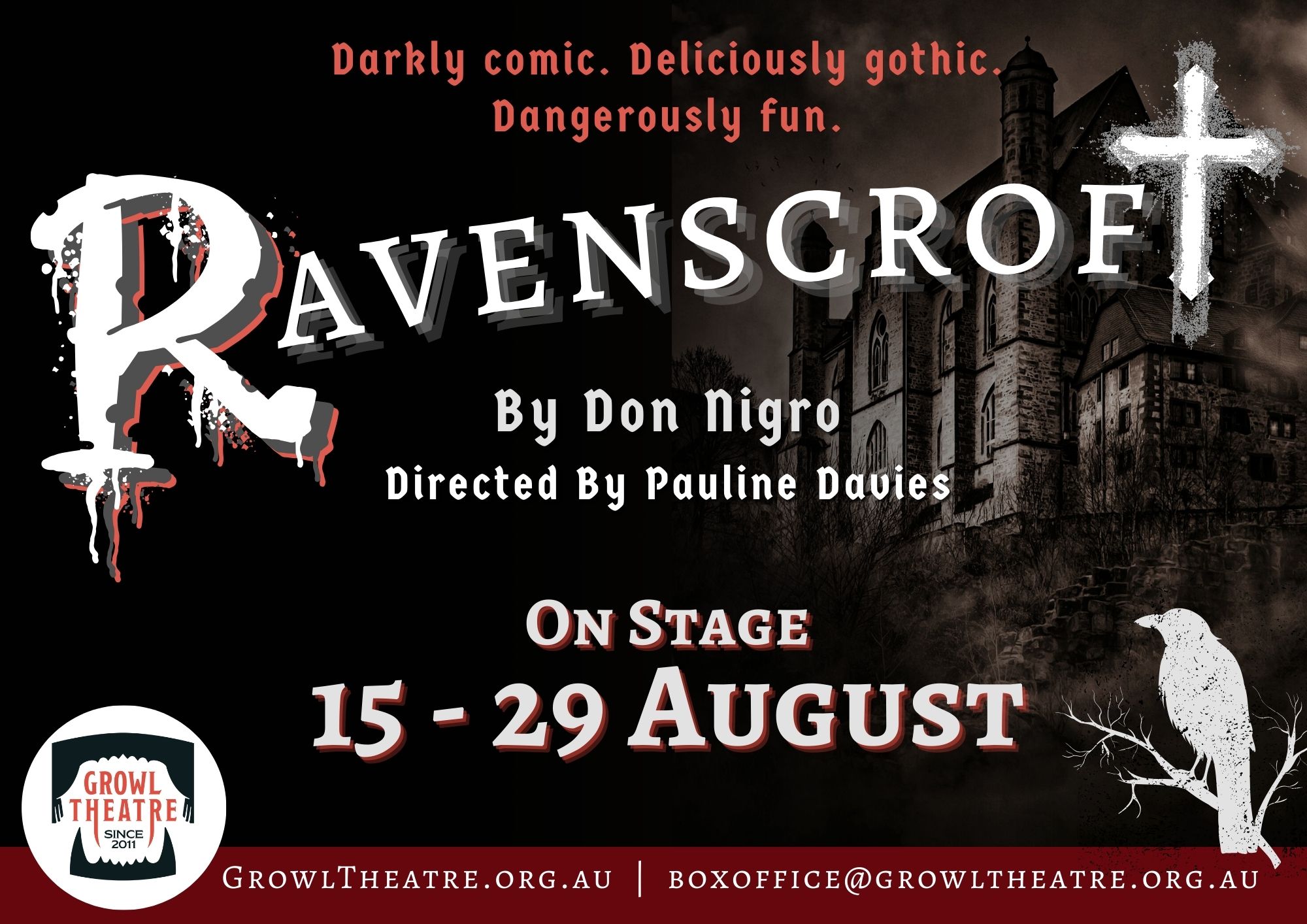 Don Nigro’s Ravenscroft is a witty, gothic mystery with a sly sense of humour, twisting suspense, and a cast of characters who keep both the detective and the audience guessing until the very end.